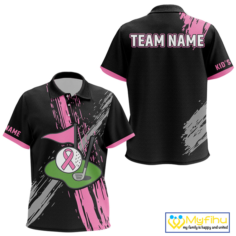 Black and pink ribbon Breast Cancer Awareness golf shirts custom Kid golf polo shirt, best golf gift NQS10196
