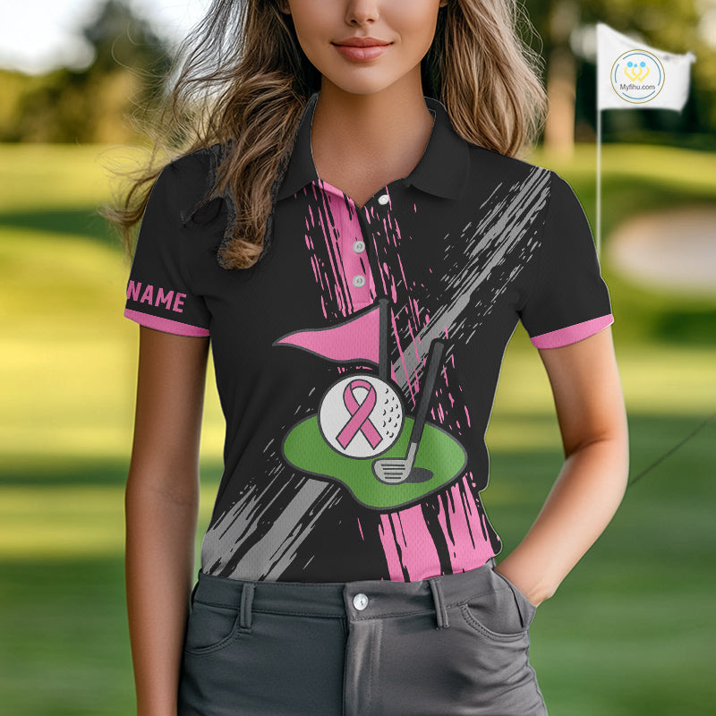 Black and pink ribbon Breast Cancer Awareness golf shirts custom Women golf polo shirt best golf gift NQS10196