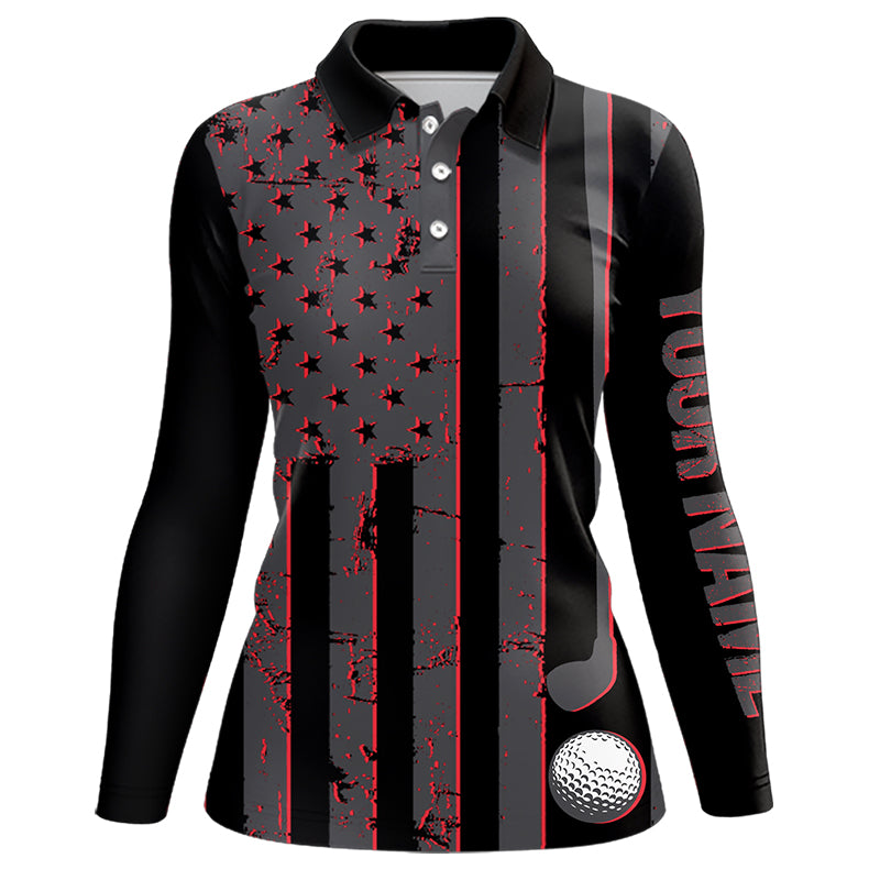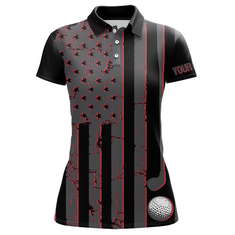 Black and Red American flag Women golf polo shirts Customize patriotic golf shirt for ladies NQS9413