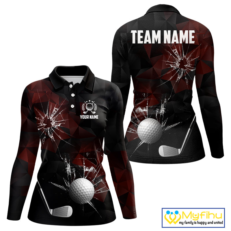 Black and Red Camo Broken golf ball Women Golf polo shirts Custom Team Golf attire for ladies NQS10449