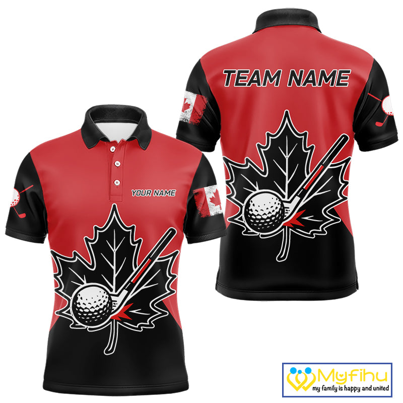 Black and Red maple leaf Mens golf polo shirts custom patriotic Canadian Flag golf attire for mens NQS9993
