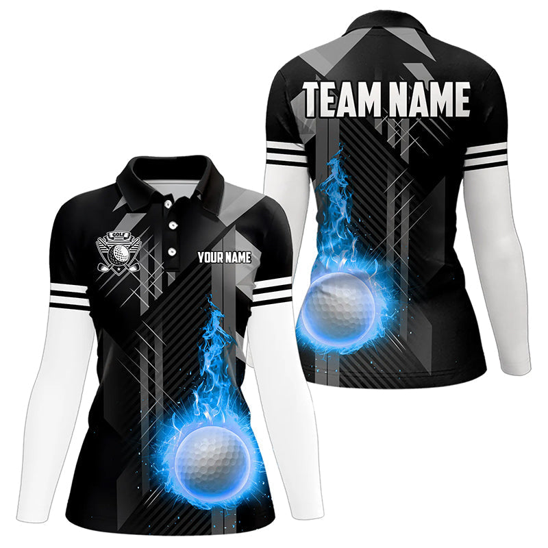 Black and White Blue Flame Golf Ball Women Golf Polo Shirts custom team name ladies golf apparel NQS9233