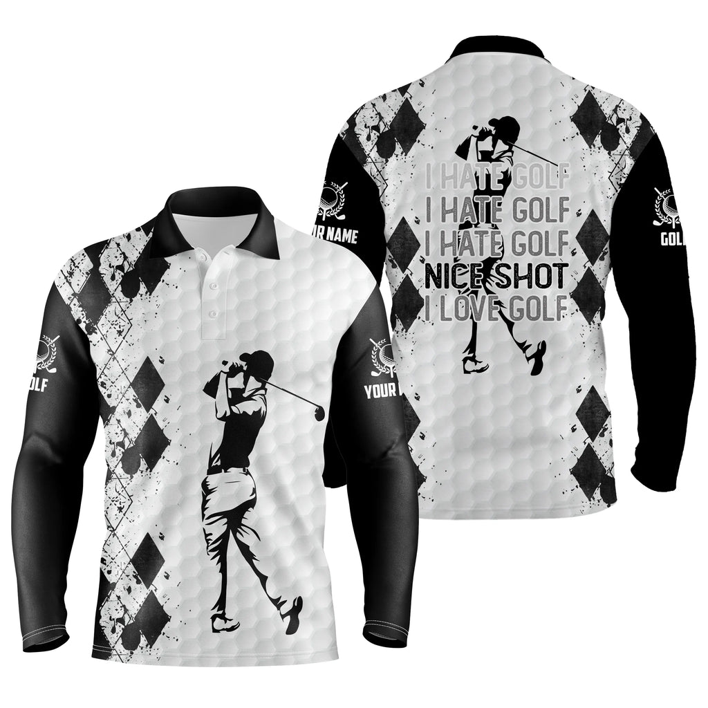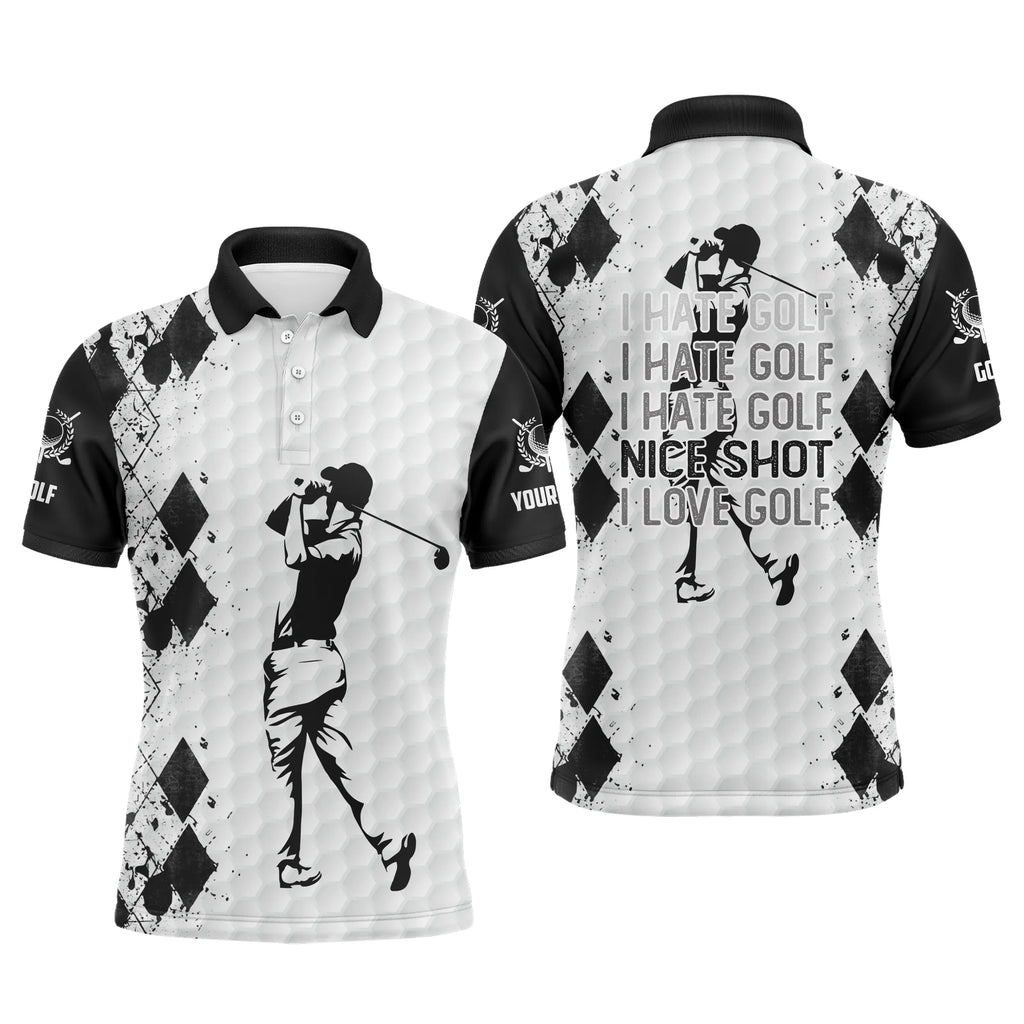 Black and white Mens golf polo shirt I hate golf nice shot I love golf custom name funny golf gifts NQS5030