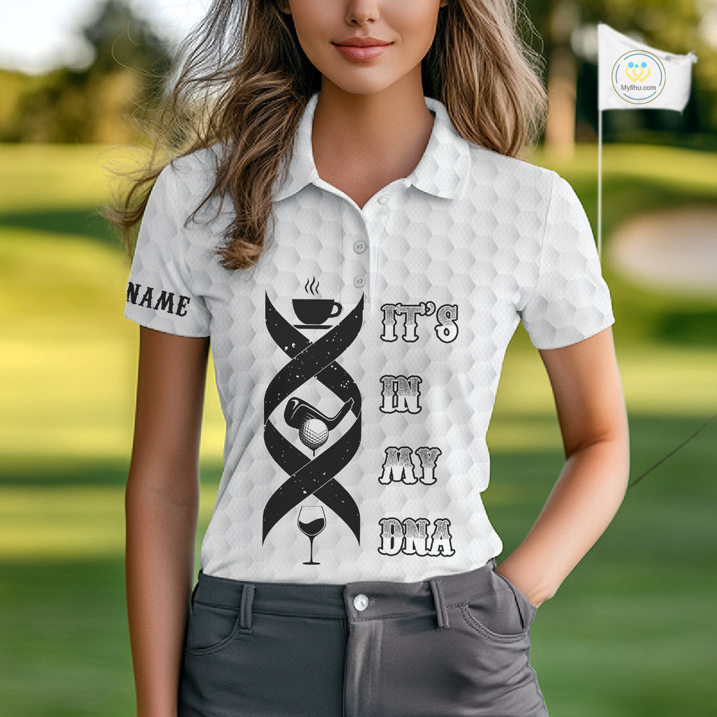 Black and White Women golf polo shirt custom It's in my DNA coffee golf wine ladies golf outfit NQS10390