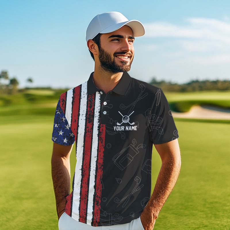 Black Camo American Flag Golf Polo Shirts For Men custom Patriotic golf outfit Team Jerseys NQS9727