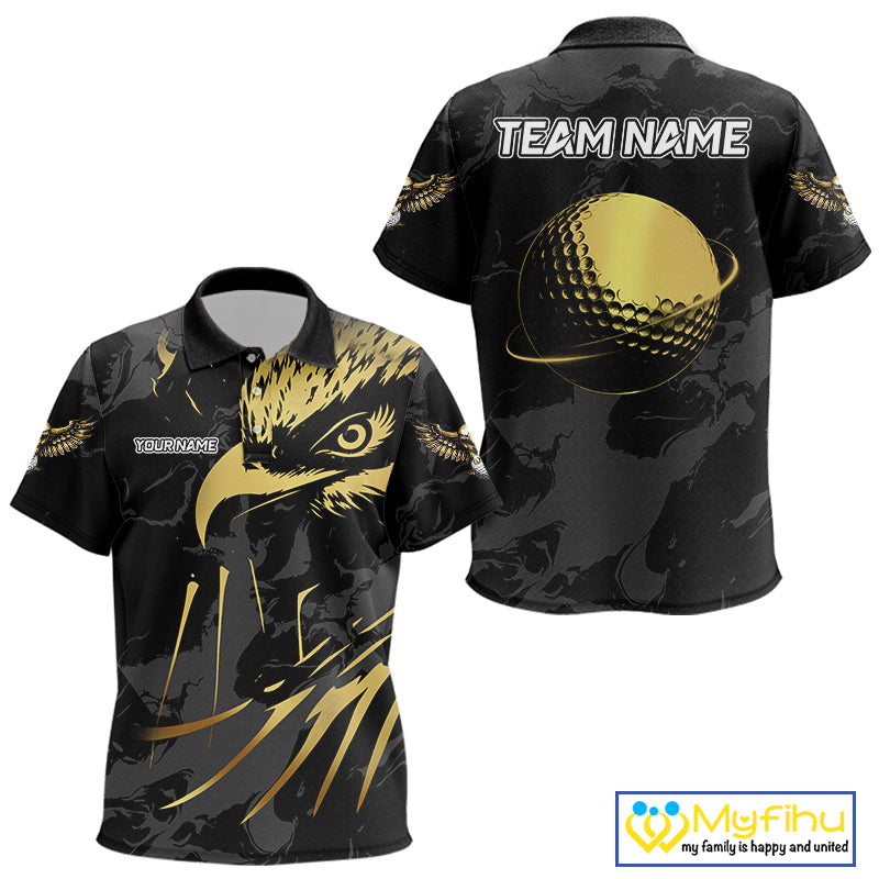 Black & Gold Eagle golf polo shirts for Kid custom Kid's golf team shirts, personalized golf gifts NQS10208