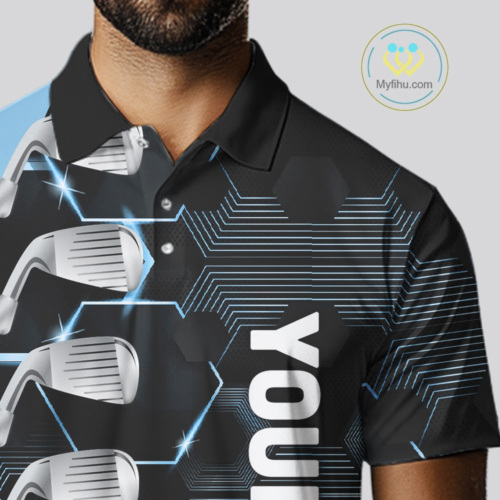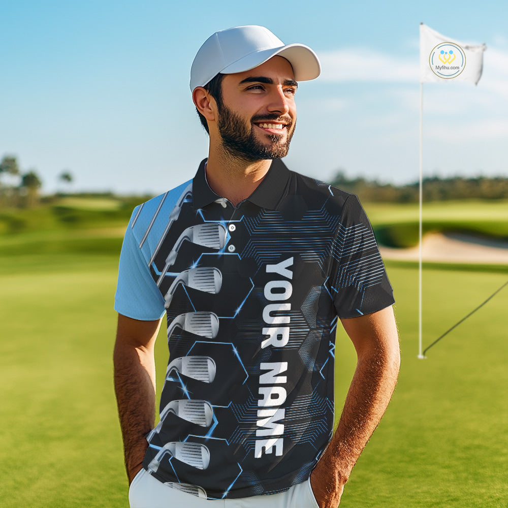 Blue and Black golf clubs Mens golf polo shirts custom name golf outfit men, personalized golf gifts NQS10212