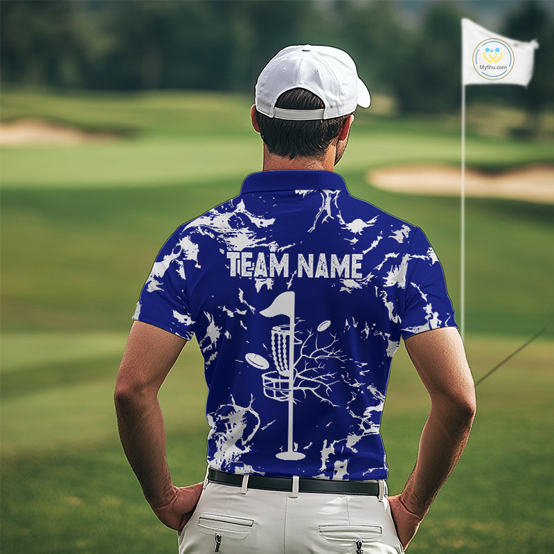 Blue and Gray Camo Disc Golf basket Mens Disc golf polo shirts Custom team disc golf jerseys NQS10797