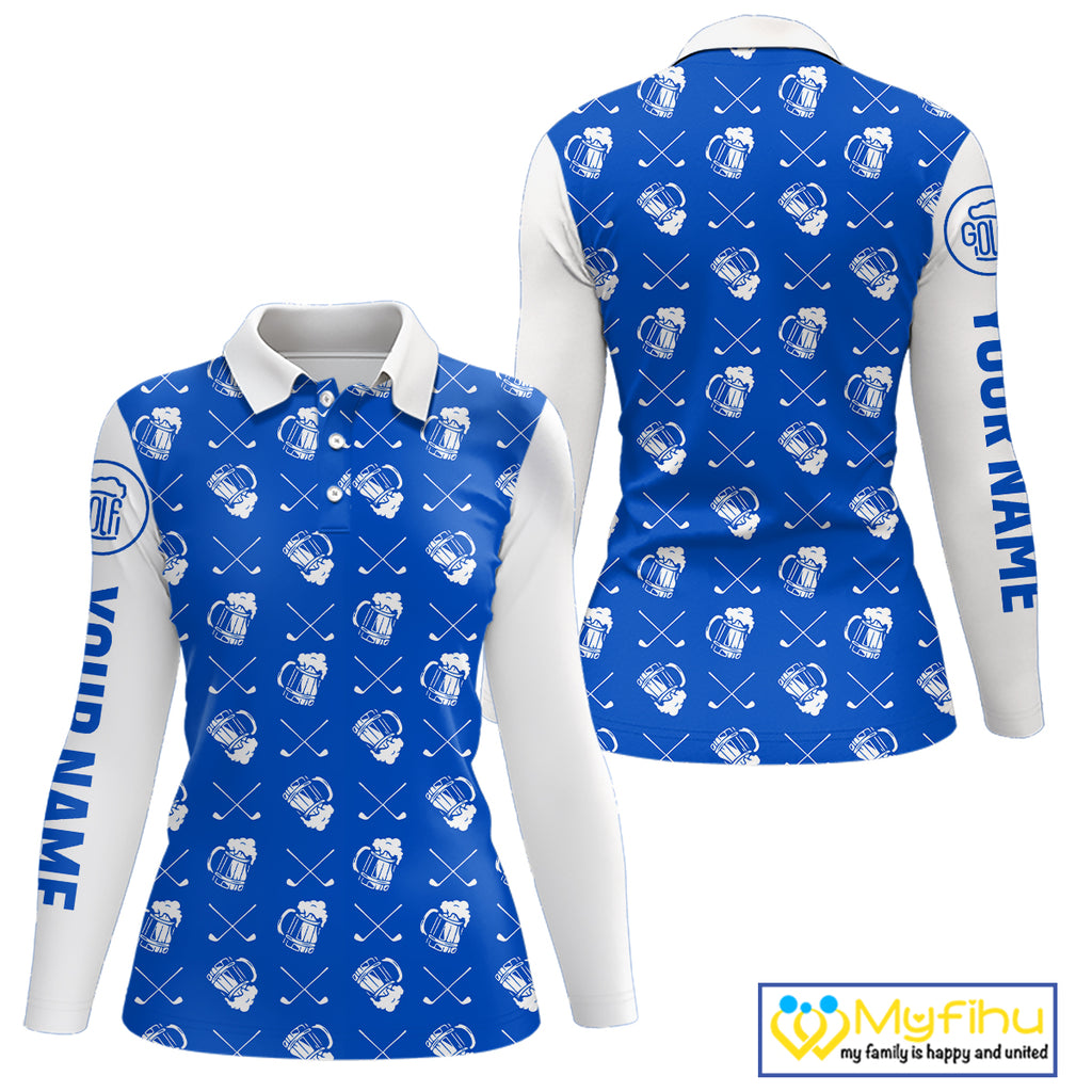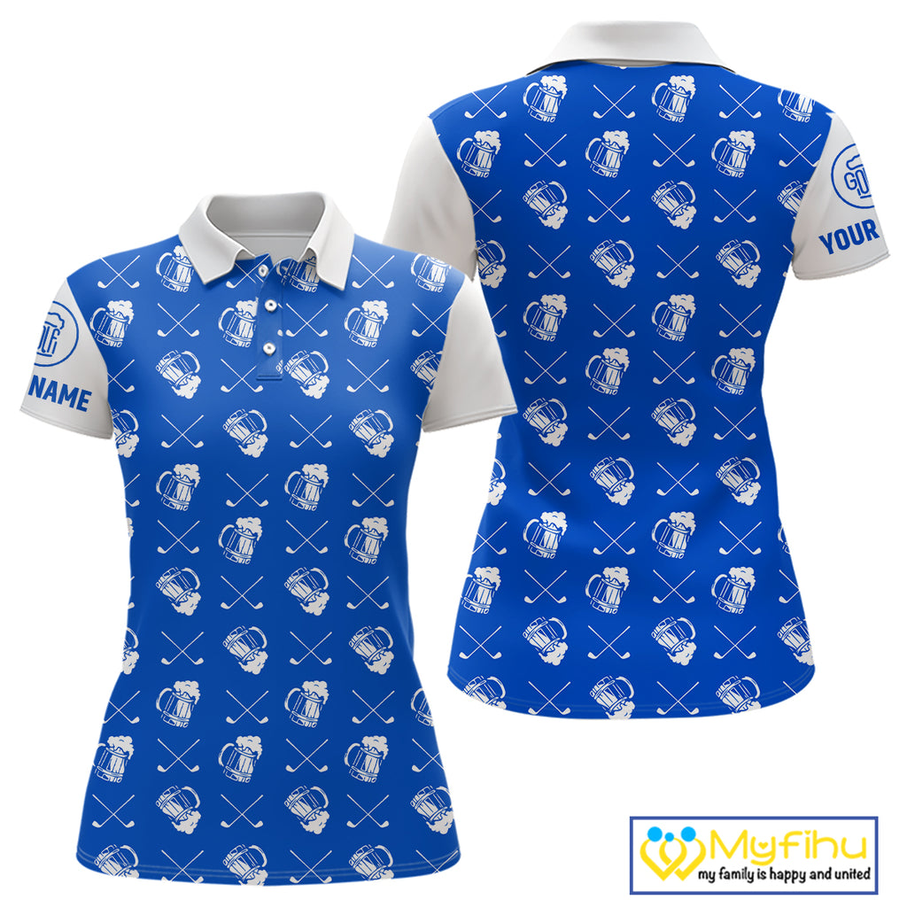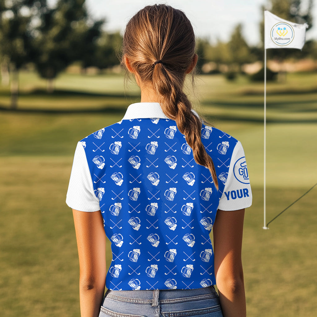 Blue and white golf pattern Women Golf polo shirts custom name golf beer outfit ladies golf clothes NQS9856