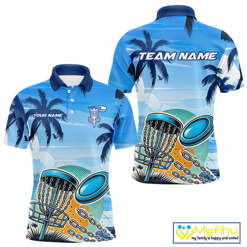 Blue Disc golf basket Mens Disc golf polo shirts Custom team disc golf jerseys NQS10021