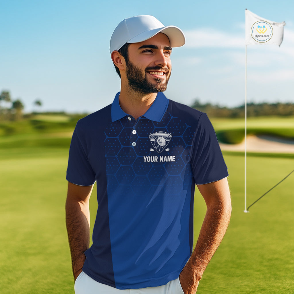 Blue Pattern Mens Golf polo shirts custom Team name golf outfit for men, unique golf gifts NQS9874
