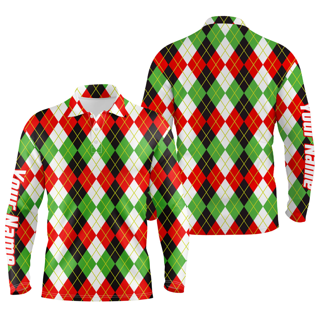 Christmas plaid Argyle Pattern - Funny Christmas Men's Golf Polo Custom Name shirt TTN103