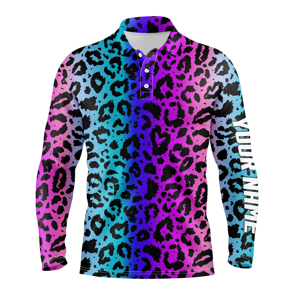 Colorful neon gradient leopard mens golf polo shirts, custom pattern golf shirt mens golf polo NQS4990