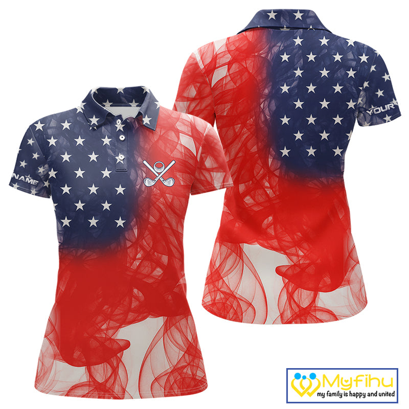 Custom Smoke American Flag Patriotic Golf Polo Shirt For Women, Personalized Ladies Golf top NQS10497