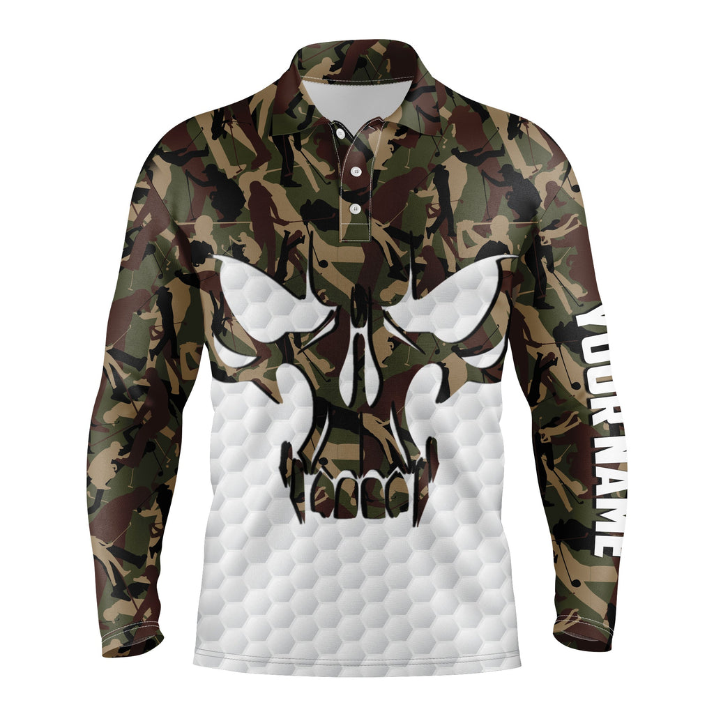 Long sleeve camo Golf skull Polo Shirts for Men custom golf shirts, gifts for golf lovers NQS3342