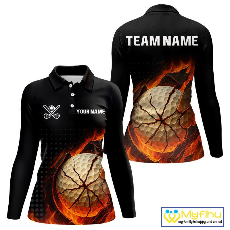 Flame Broken Golf Ball Custom Women golf polo shirt, personalized cool golf outfit for ladies NQS10101