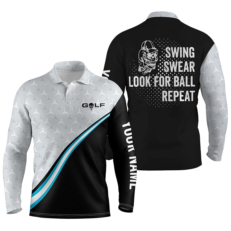 Funny black Mens golf polo shirt custom name swing swear look for ball repeat golf wear for mens NQS5452