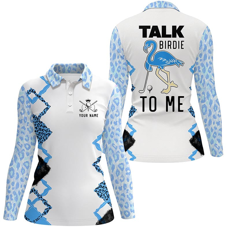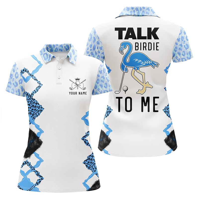 Funny blue leopard Womens golf polo shirt talk birdie to me custom name blue flamingo golf shirts NQS5372