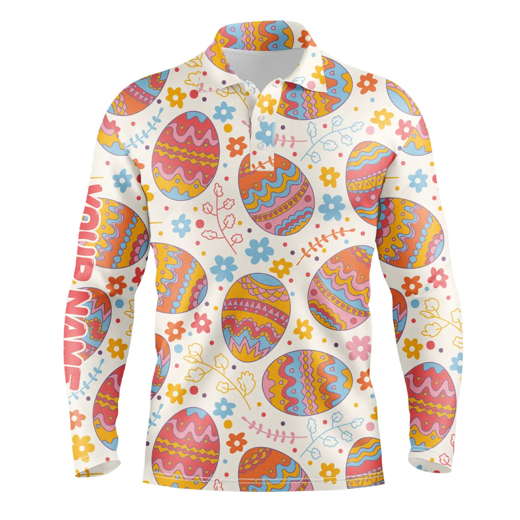 Funny Easter eggs pattern golf shirt custom name Mens golf polo shirt, Easter golfing gifts for men NQS4916
