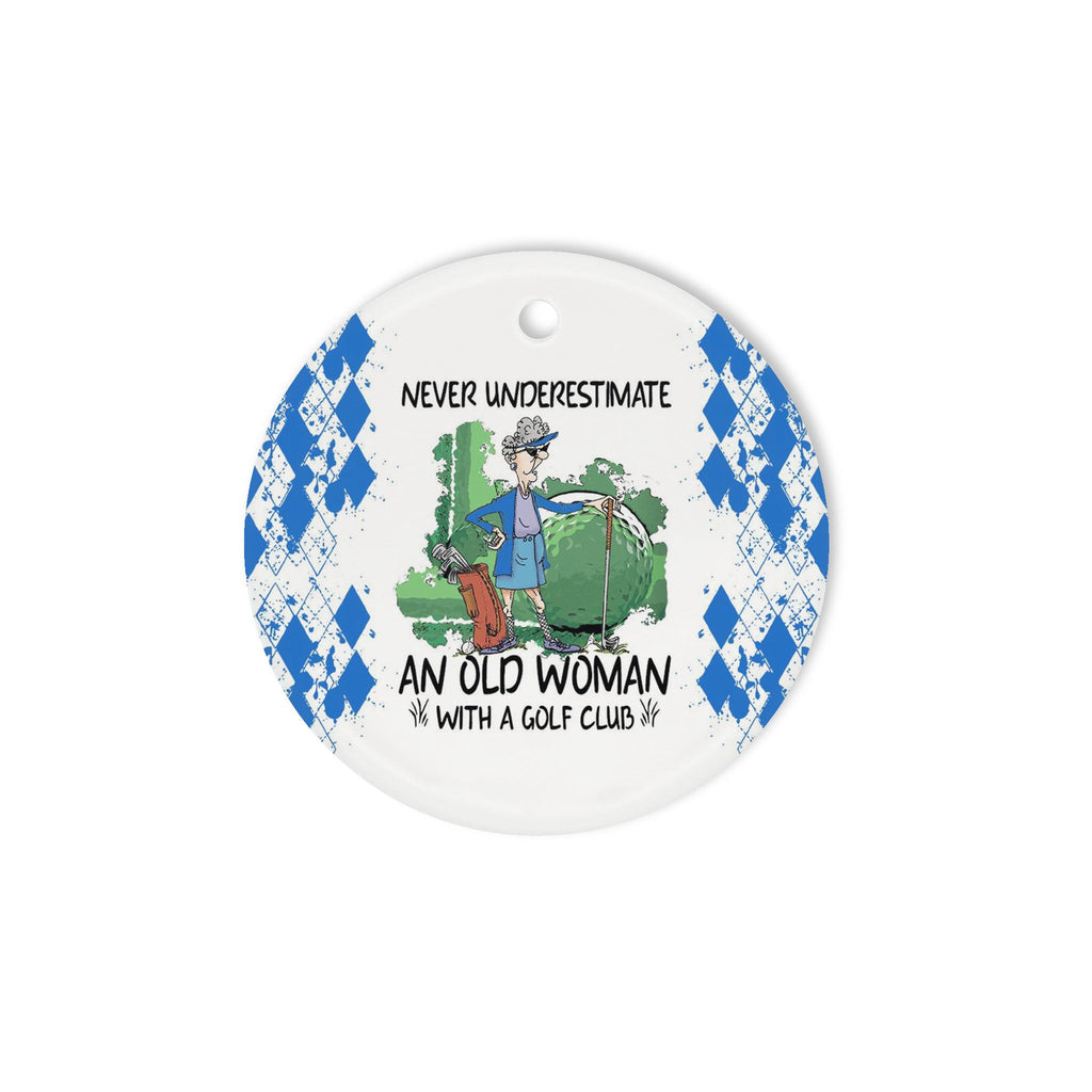 Funny golf Christmas ornament never underestimate an old woman with a golf club ceramic Ornament NQS4133