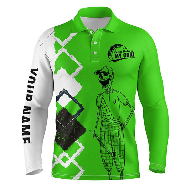 Funny golf shirts skull custom Men golf polos shirts your hole is my goal, golf gifts for him | Green NQS4590