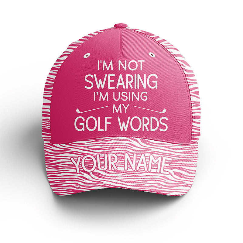 Funny Golfer hat custom name I'm not swearing I'm using my golf words, pink zebra ladies golf hats NQS5330