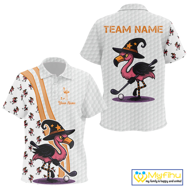 Funny Kid golf polo shirt custom Halloween flamingo pattern white golf shirts NQS10377