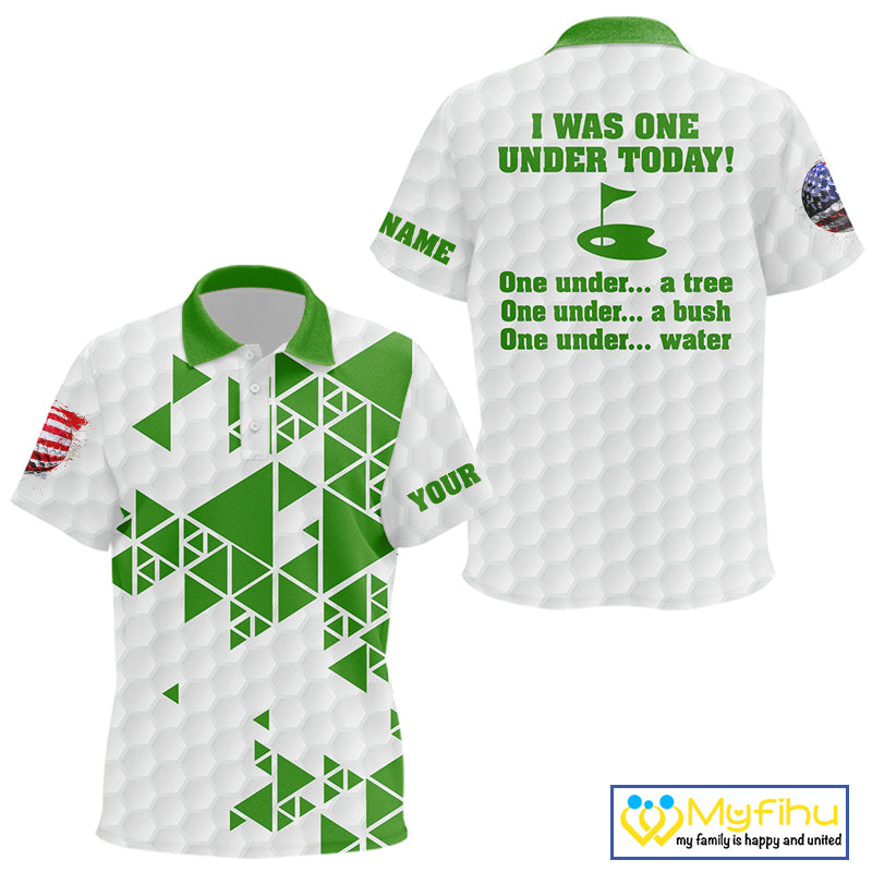 Funny Kid golf polo shirts green and white custom I was one under today, under a tree, bush, water NQS10165