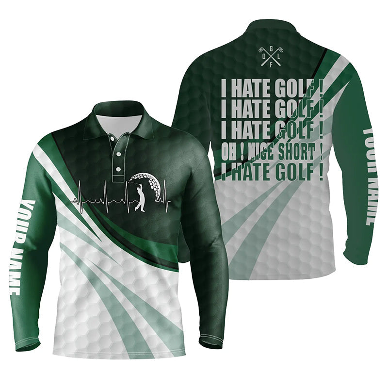 Funny Men golf polo shirts I hate golf nice shot I love golf custom green golf shirt for mens NQS5451
