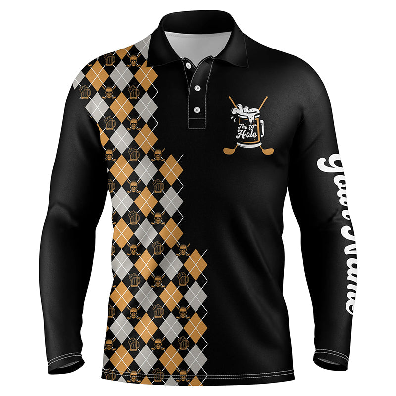 Funny Mens golf polo shirt custom the golf clubs skull beer yellow argyle pattern black golf shirt NQS5360