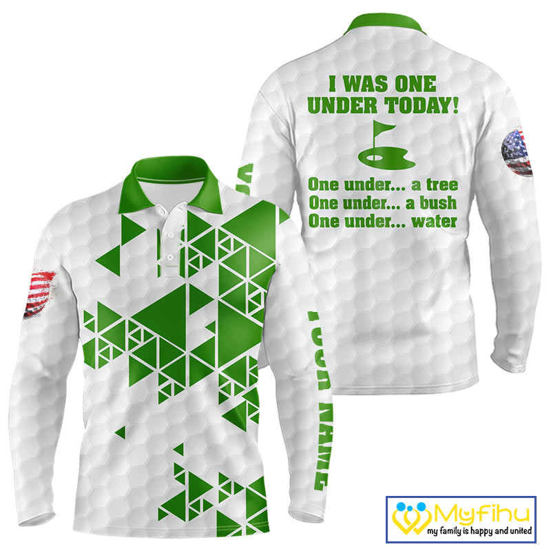 Funny Mens golf polo shirts green and white custom I was one under today, under a tree, bush, water NQS10165