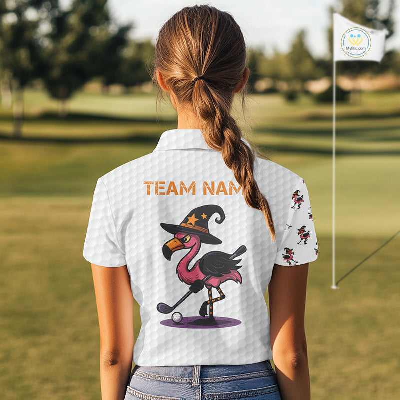 Funny Women golf polo shirt custom Halloween flamingo pattern white golf shirts NQS10377