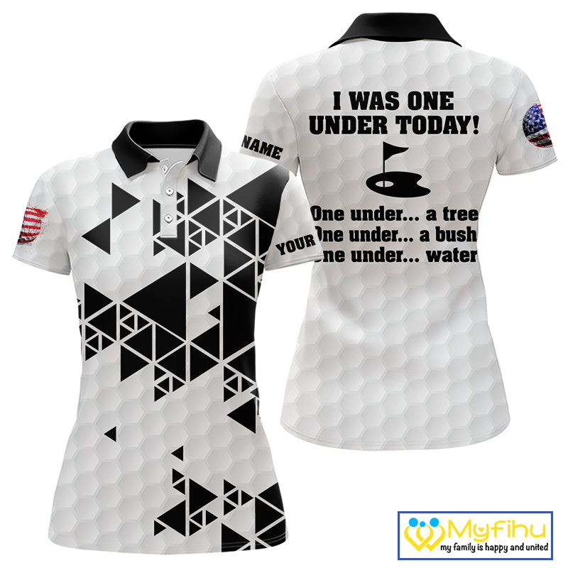 Funny Women golf polo shirts black and white custom I was one under today, under a tree, bush, water NQS10164