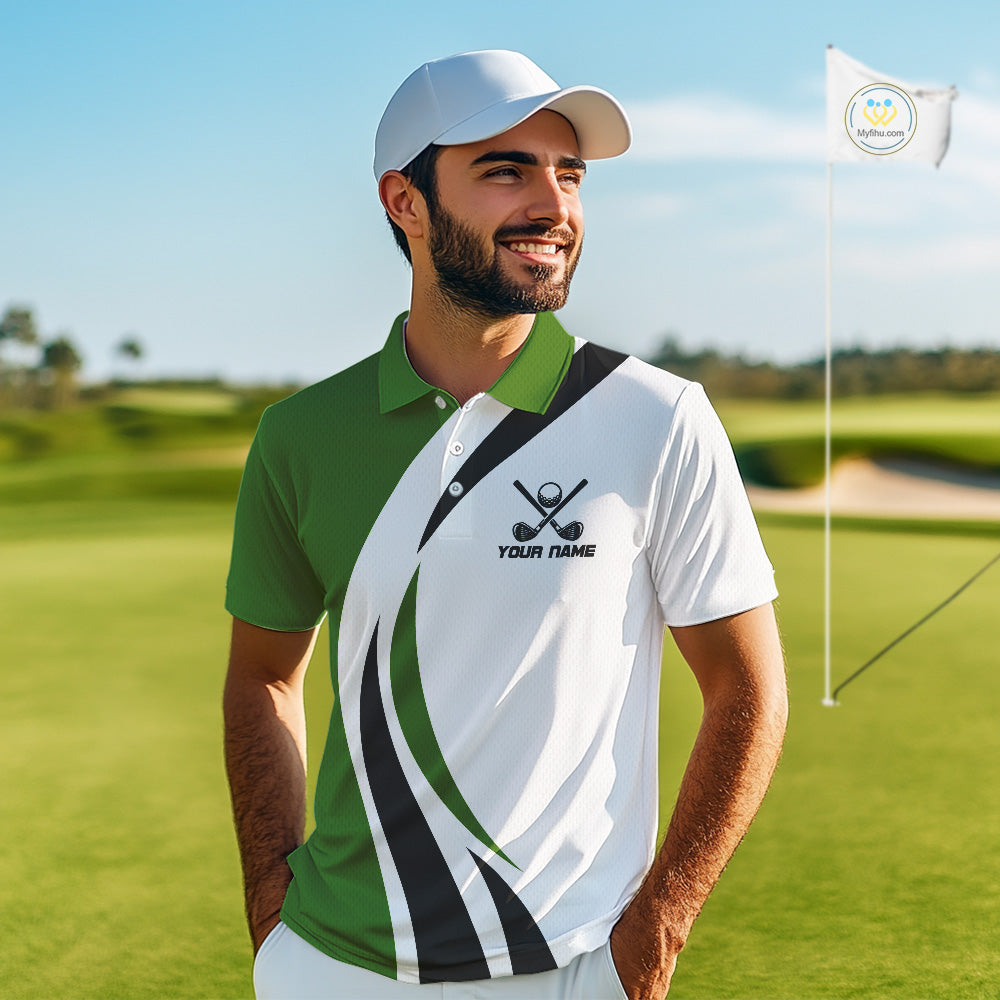 Green and White Men golf polo shirt Custom golf attire for men, gifts for golf lovers NQS10664
