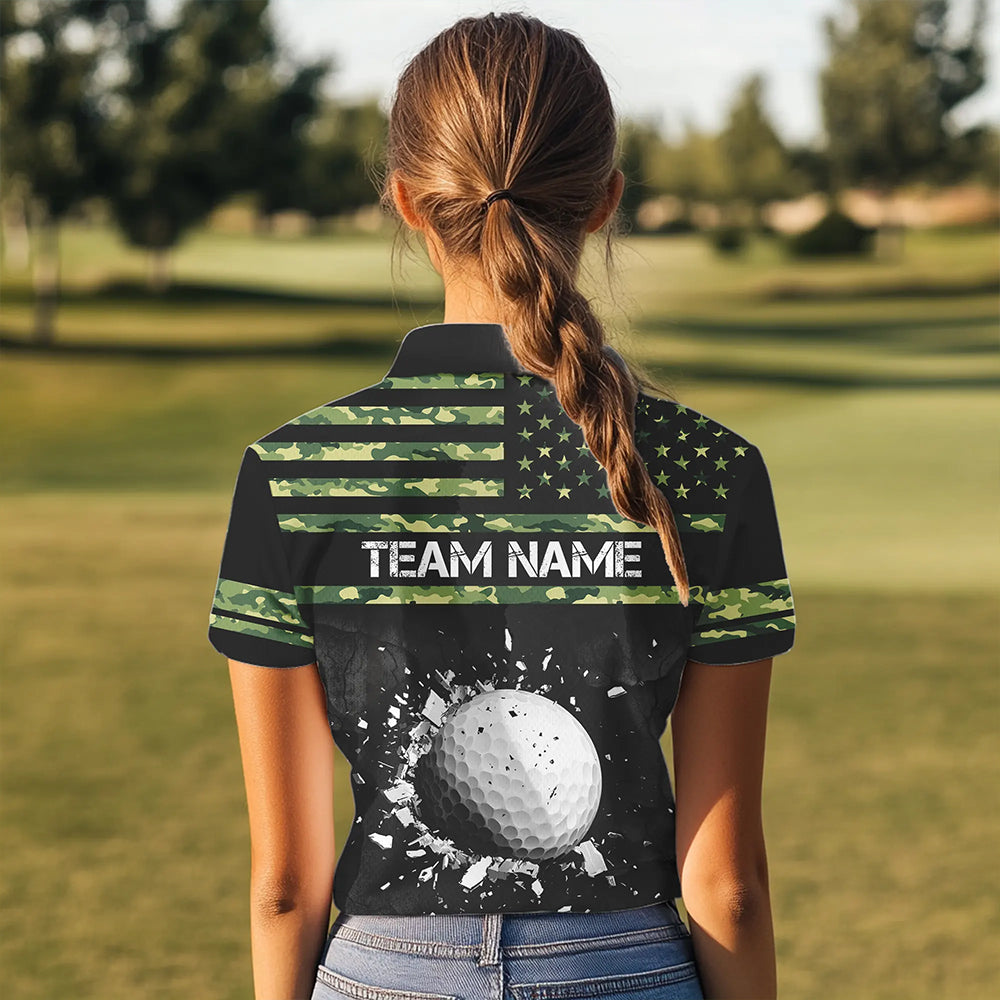 Green Camo American flag black Women golf polo shirts custom patriotic team golf apparel for ladies NQS9517