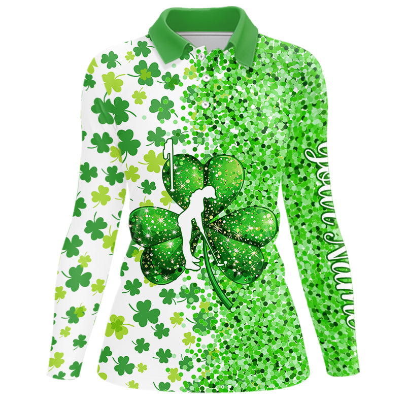 Green glitter shamrock clover Womens Golf Polo Shirts custom St Patrick day golf shirt for ladies NQS9462
