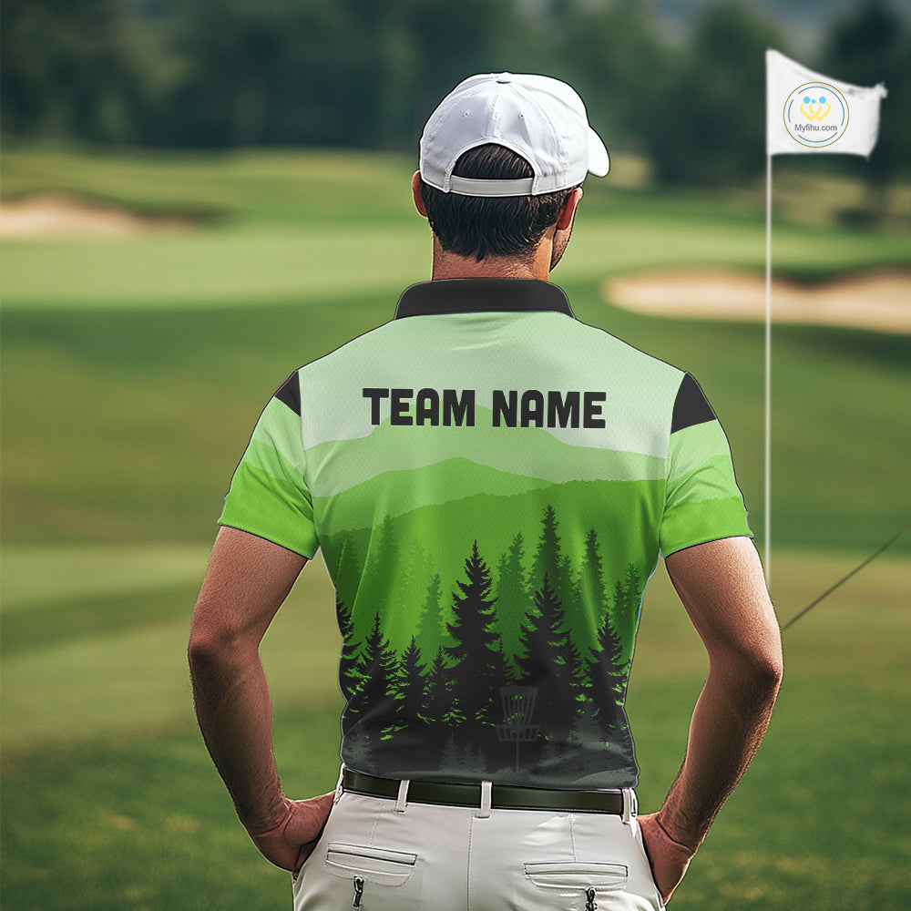 Green pattern forest Mens Disc golf polo shirts Custom team disc golf jerseys for men NQS10027