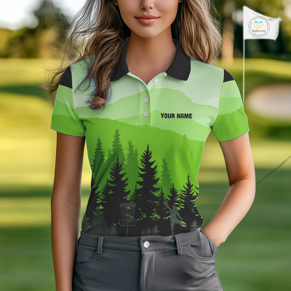 Green pattern forest Women Disc golf polo shirts Custom team disc golf jerseys for ladies NQS10027
