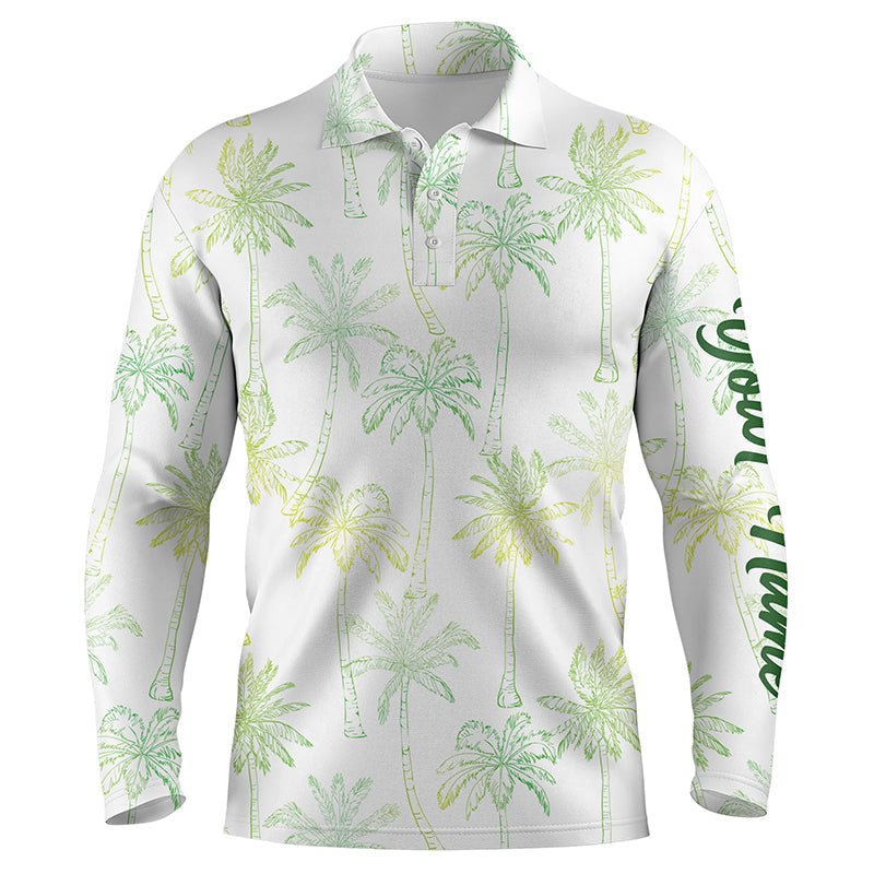 Green Tropical palm trees pattern Mens golf polo shirts custom team white golf shirt mens NQS5725