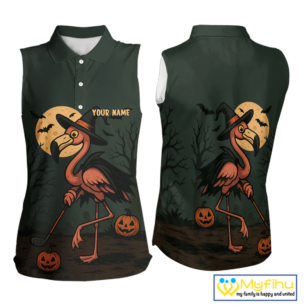 Halloween flamingo Women Sleeveless Polo Shirt custom Halloween golf top for ladies, unique golf gift NQS10378