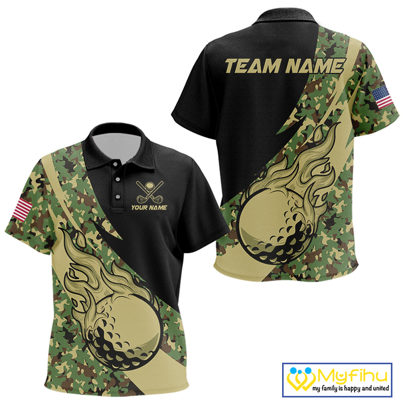 Kid Golf polo shirts flame golf ball Custom green camo Golf attire For Kid, personalized golf gifts NQS10052