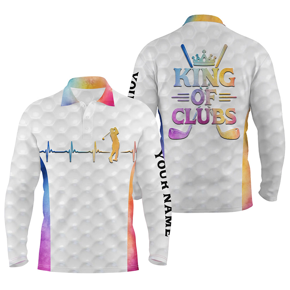 King Of Clubs Golf Polo Shirts Custom Name Heartbeat White Golf Shirts For Men, Colorful Golf Top LDT0184
