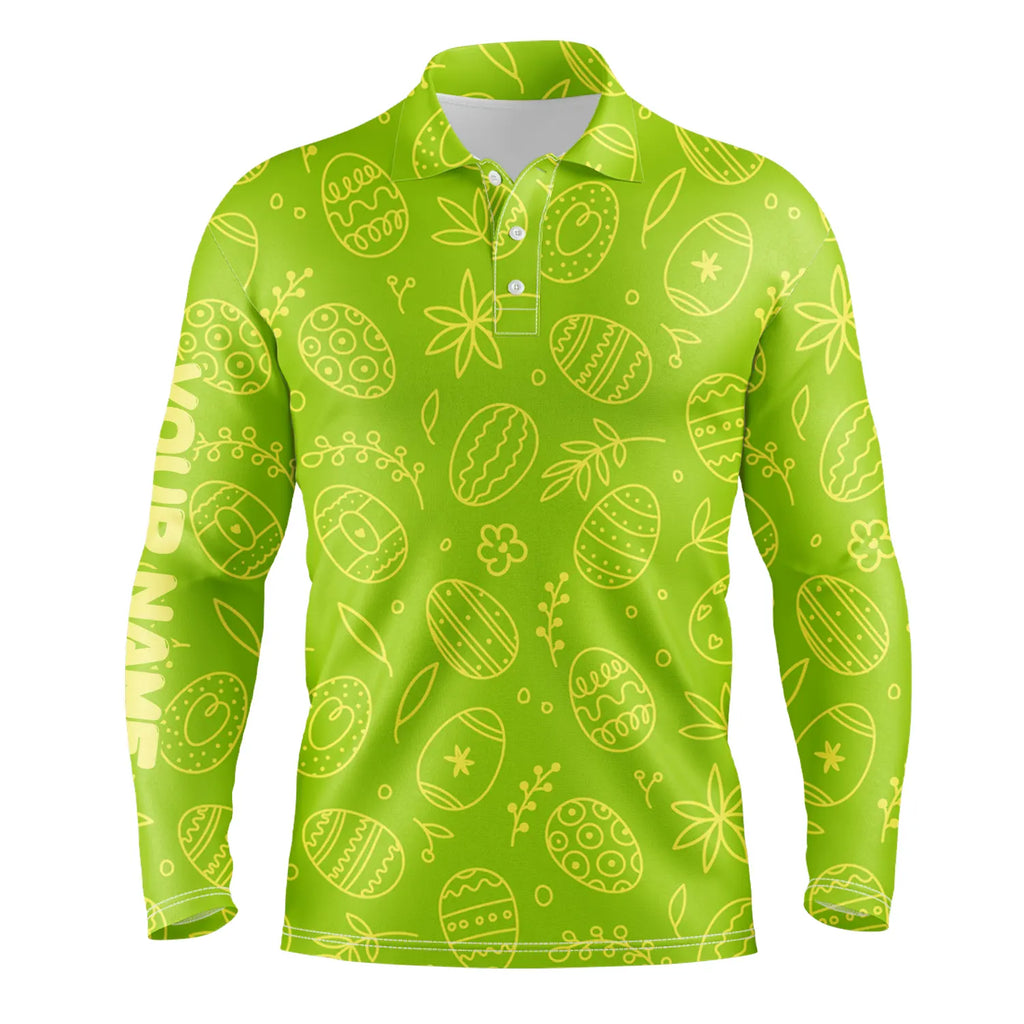 Lime green Easter eggs pattern golf shirt custom name Mens golf polo shirt, personalized golf gifts NQS4918