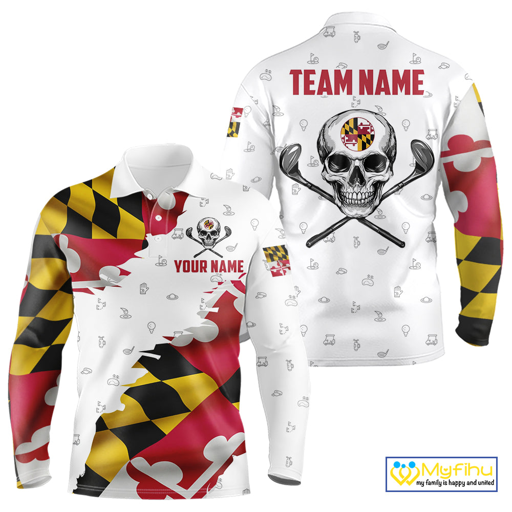 Maryland Flag Golf Clubs Skull Golf Camo Men golf polo shirts Custom Patriotic Golf Team Jerseys NQS9937
