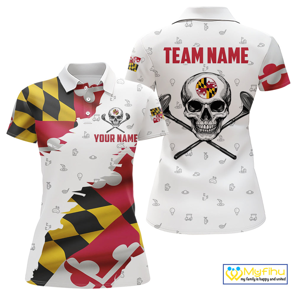 Maryland Flag Golf Clubs Skull Golf Camo Women golf polo shirts Custom Patriotic Golf Team Jersey NQS9937
