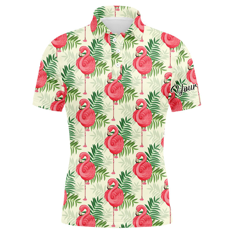 Men golf polo shirts pink flamingo green tropical leaf pattern custom name team golf polo shirts NQS4779
