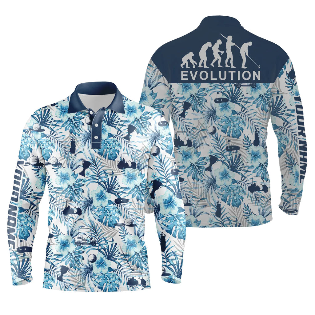 Mens golf polo shirt blue tropical plant pattern golf shirts custom name evolution golf gifts for men NQS4797