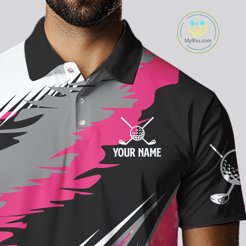 Mens golf polo shirt Custom pink ribbon pattern mens golf clothes, Breast cancer shirt for golfer NQS10516