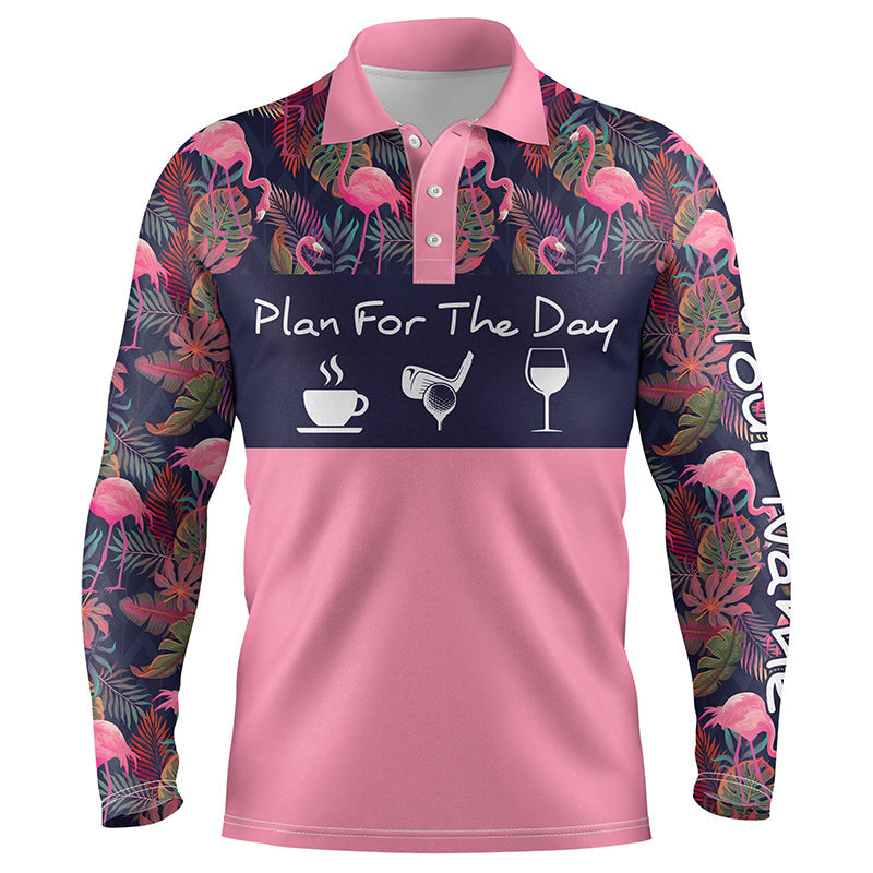 Mens golf polo shirt plan for the day coffee golf wine custom pink flamingo and palm leaves golf shirt NQS4001