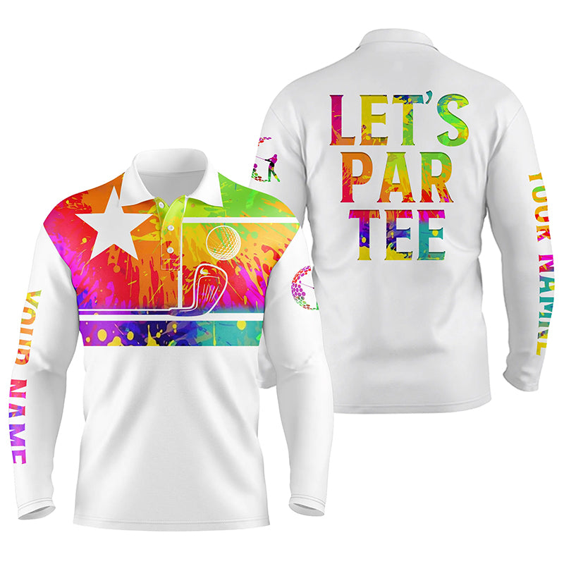 Mens golf polo shirt watercolor Texas flag patriot golf custom name Let’s Par Tee white golf shirt NQS5470